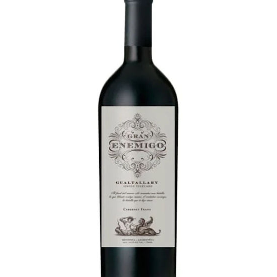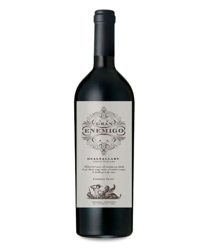 Gran Enemigo Gualtallary 2020 displays a vibrant deep purple colour with bright red highlights. The nose reveals intense aromas of sweet spices, black pepper, eucalyptus, and thyme, thanks to the dominant Cabernet Franc. Ripe black fruits like blackberries and black cherries come from the Malbec component. Subtle French oak ageing imparts layers of chocolate and vanilla, culminating in a complex, structured palate with long-lasting tannins and a persistent finish.